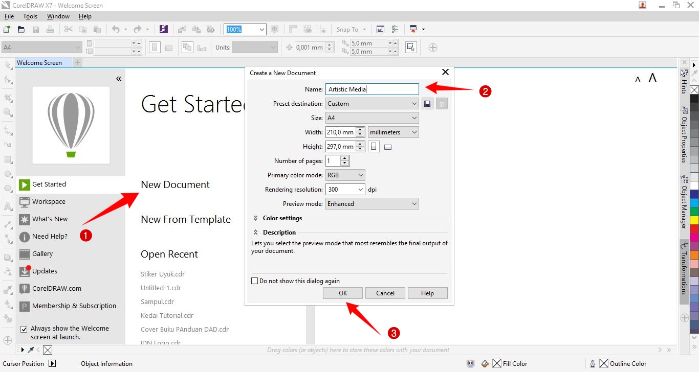 - Pada halaman lembar kerja baru klik icon artistic media tool seperti pada gambar